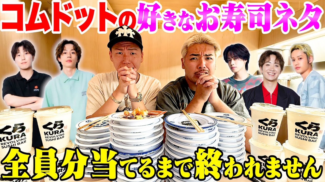 - タイトル: 【大食い】『コムドット全員』の好きなお寿司のネタ全て当てるまで食べ続けないといけないくら寿司!!