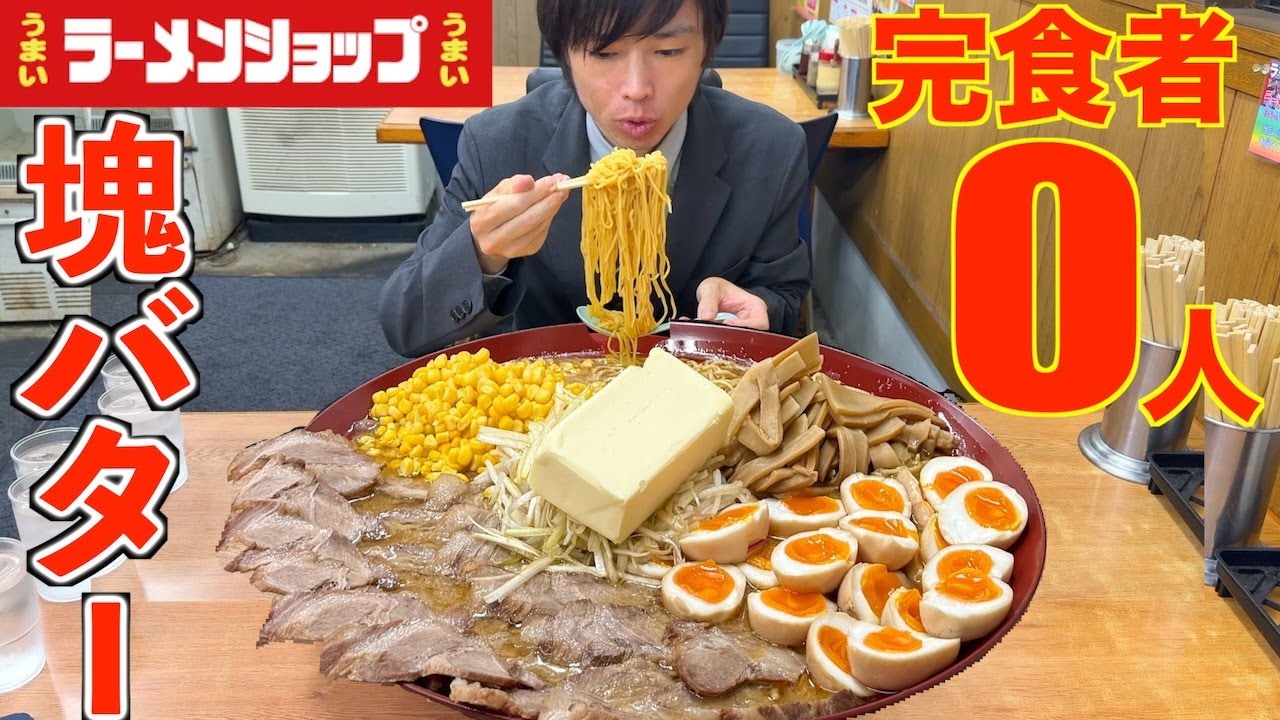 - タイトル: 【大食い】ラーメンショップに新登場した塊バターの乗った超巨大札幌味噌背脂ラーメンの大食いチャレンジに挑んだ結果【高カロリー】【激アツ】【モッパン】대식 BigEater Challenge Menu