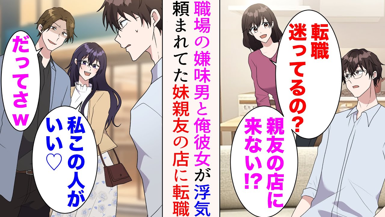 - タイトル: 【漫画】妹「転職迷ってるの?親友の店に来ない⁉︎」転職を考えてる時、妹にそう頼まれた俺→彼女が職場の嫌味男と浮気しているのを発見したので、妹親友の店に転職したら【マンガ動画】
