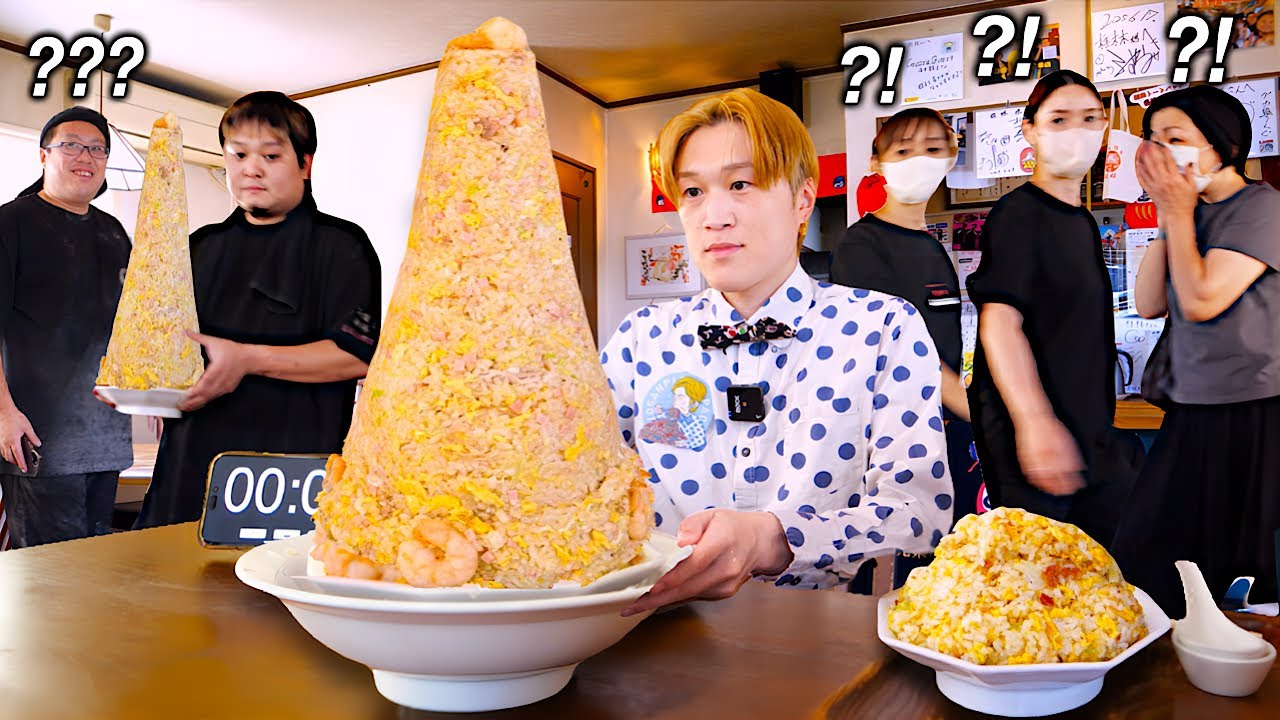 - タイトル: 【大食い】なんじゃこりゃ…。栃木県足利市にある町中華の”巨大海老炒飯タワー”を注文したら店内全員ざわついた…。【大胃王】【青竹手打ちラーメン 桂林本店】