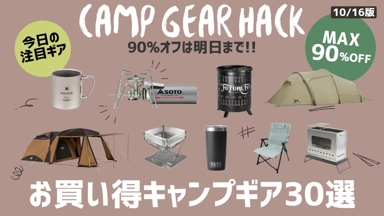 - タイトル: 90%オフってタダじゃん!気温に合わせて使えるレイヤーシュラフや別注テント、新作焚き火台がも注目!Amazon/楽天お買い得キャンプギア30選!【キャンプギア】
