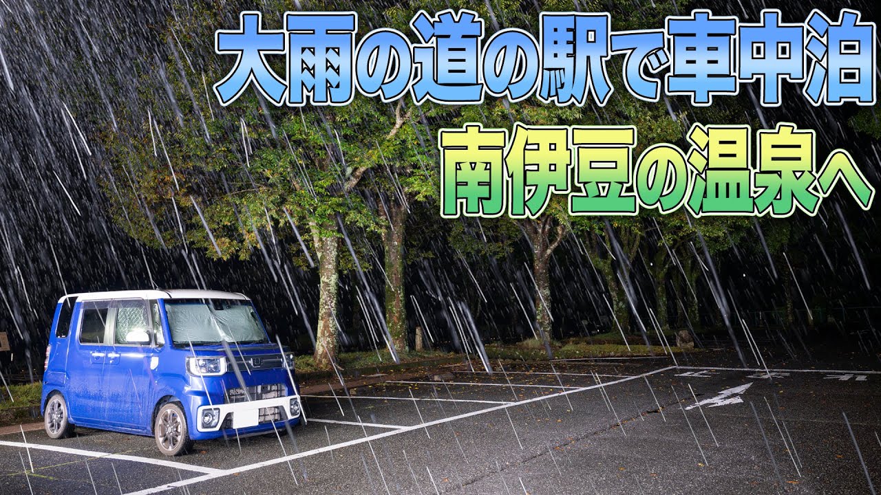 - タイトル: 大雨の伊豆半島で車中泊。南伊豆の温泉へ。誰もいない河津七滝巡り。道の駅 天城越え【ダイハツ ウェイク】