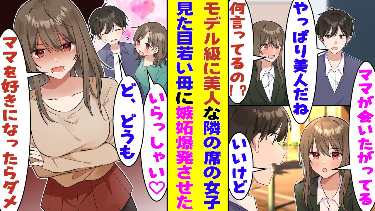- タイトル: 【漫画】芸能人級に美人な隣の席の女子、俺が話しかけるとこっそり照れていて「ママが君に会いたがってる」とお家デートに誘ってきた→家に行くと美人ママに気に入られ「ママを好きにならないで!」と嫉妬された!?