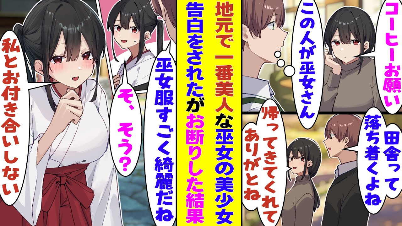 - タイトル: 【漫画】実家の古民家カフェでバイトしていると、地元神社の巫女さんが常連になった。仲良くなると「付き合ってください」と告白されて、苦渋の思いで断ると「契りを交わすまで逃がしません」と強引に迫ってきた!?