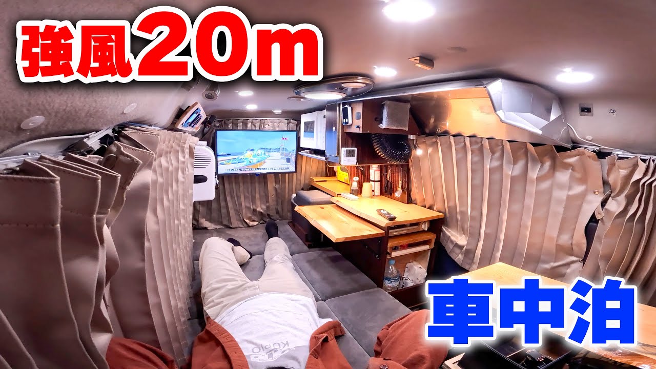 - タイトル: 台風級の強風20m海岸車中泊 | 軽自動車に娯楽詰め込んだ軽キャンピングカー仕様