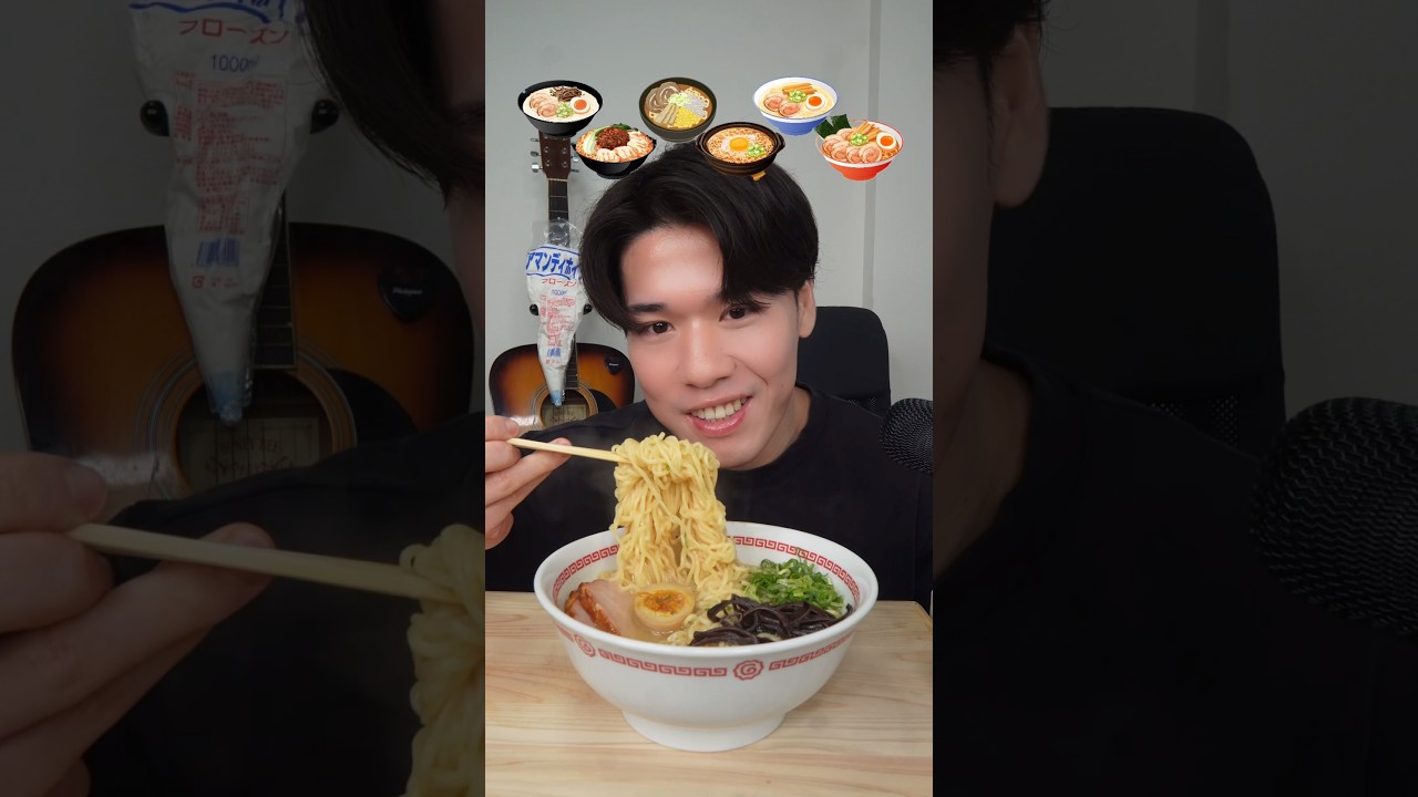 • タイトル: 色んな味のラーメン爆食いしたらラーメンになりました🍜(?)#ラーメン #飯テロ #大食い #mukbang #asmr#food