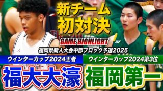 バスケットボール【高校バスケ】福大大濠vs福岡第一 残り40秒で1点差..激闘の結末は?ウインターカップ2024王者と第3位が新チーム初のライバル対決 [福岡県新人大会中部ブロック予選2025]【バスケ】 令和6年度福岡県高校バスケ新人大会中部ブロック予選会・男子決勝リーグ■福大大濠vs福岡第一(2025年1月12日、東福岡高校)▼福大大濠高校ロスター(★はスターター)4 勝又 絆5 栗原 咲太郎6 吉岡 陽7 村上 敬之丞★8 サントス マ... 2025.01.12バスケットボール