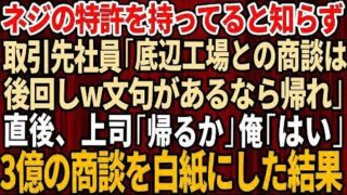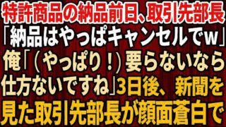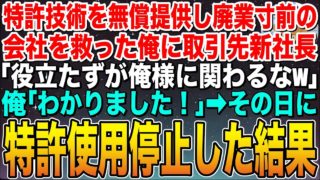 特許【感動する話】特許技術を無償提供し廃業寸前の会社を救った俺を知らない取引先の新社長「役立たずが俺様に関わるなよw」俺「了解です!」➡︎その日に特許使用停止した結果ww【スカッと】【朗読】