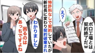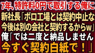 【スカッと】7年間、特許使用料なしで取引していた俺に新社長「ボロ工場とは契約中止な!今後は別の会社と契約するからw」俺「では二度と納品しません。今すぐ契約白紙で!」