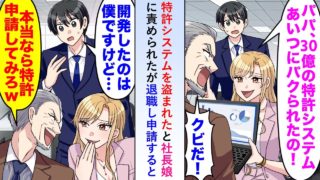 【漫画】30億の特許システムを盗まれたと社長娘に責められたが開発者は俺なので退職し特許申請すると会社が大混乱に…【恋愛マンガ動画】