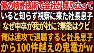 【スカッと】俺の特許技術で会社が成り立っていると知らず、視察にきた社長息子「なぜ中卒が我が社にいる?無能はクビだ」俺「わかりました」→速攻で退職すると社長息子から100件越えの鬼電が