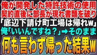 【感動する話】俺の開発した特許技術の使用契約成立直後に部長が現れ書類を破り「底辺の下請け町工場は今すぐ帰れ!」俺「あ、了解です」➡︎そのまま何も言わずに帰った結果w【スカッと】【朗読】