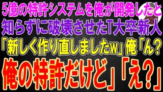 特許【スカッと】5億の特許システムを俺が開発したと知らずに破壊させたT大卒新人「新しく作り直しましたw」俺「ん?俺の特許だけど」新人「え?」結果w ```html【特許侵害で逆転】5億のシステム破壊からのT大卒新人の末路 – スカッと日誌T大卒の新人が、開発者が誰かを知らずに5億円の特許システムを破壊。しかし、そのシステムは実は俺(開発者)の特許だった…!このスカッとする物語では、シス... 2025.08.13特許