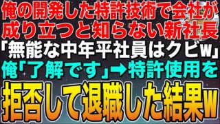 特許【感動する話】俺が発明した特許製品8個で会社の業績が上がっていると知らず、新しく就任した新社長が「中卒はクビw」俺「お世話になりました」即退職し、特許製品の設計図を処分した結果 ```html【感動】中卒と見下された発明家、8つの特許製品で会社を救った逆転劇!真実の物語感動と興奮が交錯する逆転劇ストーリー!会社を救った8つの特許製品を発明した主人公が、新社長の冷酷な一言で職を失う。しかし、その後に待っていたのは、誰... 2025.08.05特許