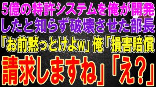 特許【スカッと】5億の特許システムを俺が開発したと知らずに破壊させた部長「お前黙っとけよw」俺「損害賠償請求しますね」部長「え?」結果w ```html【スカッと】5億の特許システム開発者が部長に復讐!損害賠償請求の顛末5億円の特許システム開発秘話:部長の横暴と痛快な逆転劇「スカッと日誌」チャンネルでおなじみの痛快な物語が、今回もあなたの心をスカッとさせてくれるでしょう。この... 2025.08.08特許