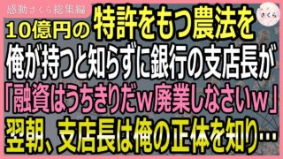 特許【感動する話・総集編】10億円の特許を持つ農法を俺が持つと知らない銀行支店長「融資は打ち切りw廃業してくれw」→ところが翌朝、俺の正体を知った支店長は真っ青に【いい話・スカッと・スカッとする話・朗読】 ```html【感動総集編】10億円特許を持つ農法、逆転劇、義父との感動秘話 – 感動さくら人気作まとめ感動をお届けする「感動さくら」チャンネルの人気作品をまとめた総集編です。10億円の特許を持つ農法、つぶれかけの店を救う逆転劇、結婚の挨拶... 2025.08.23特許