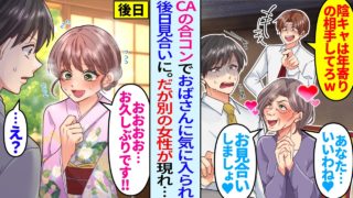 【漫画】美人CAとの合コンで嫌味同級生に50代のおばさんを押し付けられた陰キャな俺。後日、おばさんにお見合いをセッティングされると衝撃の事実が判明し…