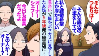 マンガ【漫画】5年前に伯母の勧めで見合いした俺。相手の女性にボロカスに見下され見合いは散々だった「私とどうして結婚できると思ったんですか?w」→数年後、俺の経営するレストランにその女性が現れ…【マンガ動画】